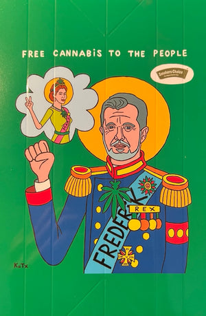 I denne udgave hylder Tuxen Prins Joachim som vores konge – tegnet proaktivt for en fremtid med fri cannabis. Med sit skarpe øje for humor, politik og dansk kulturarv forener Tuxen samfunds satire og kunst i ét udtryk, der både provokerer og inspirerer.