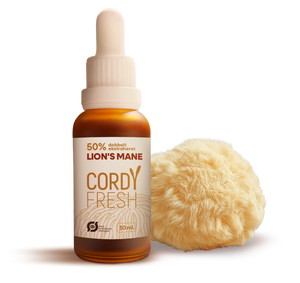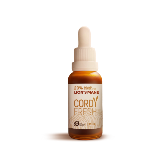 Lion’s Mane er et premium kosttilskud fra Cordyfresh, fremstillet i Aarhus med fokus på lokal og gennemsigtig produktion. Ekstraktet er udvundet af økologisk dyrket Hericium erinaceus (Lion’s Mane-svampen) og produceret af både frugtlegeme og mycelium for at give et balanceret og bredt spektrum af bioaktive forbindelser.